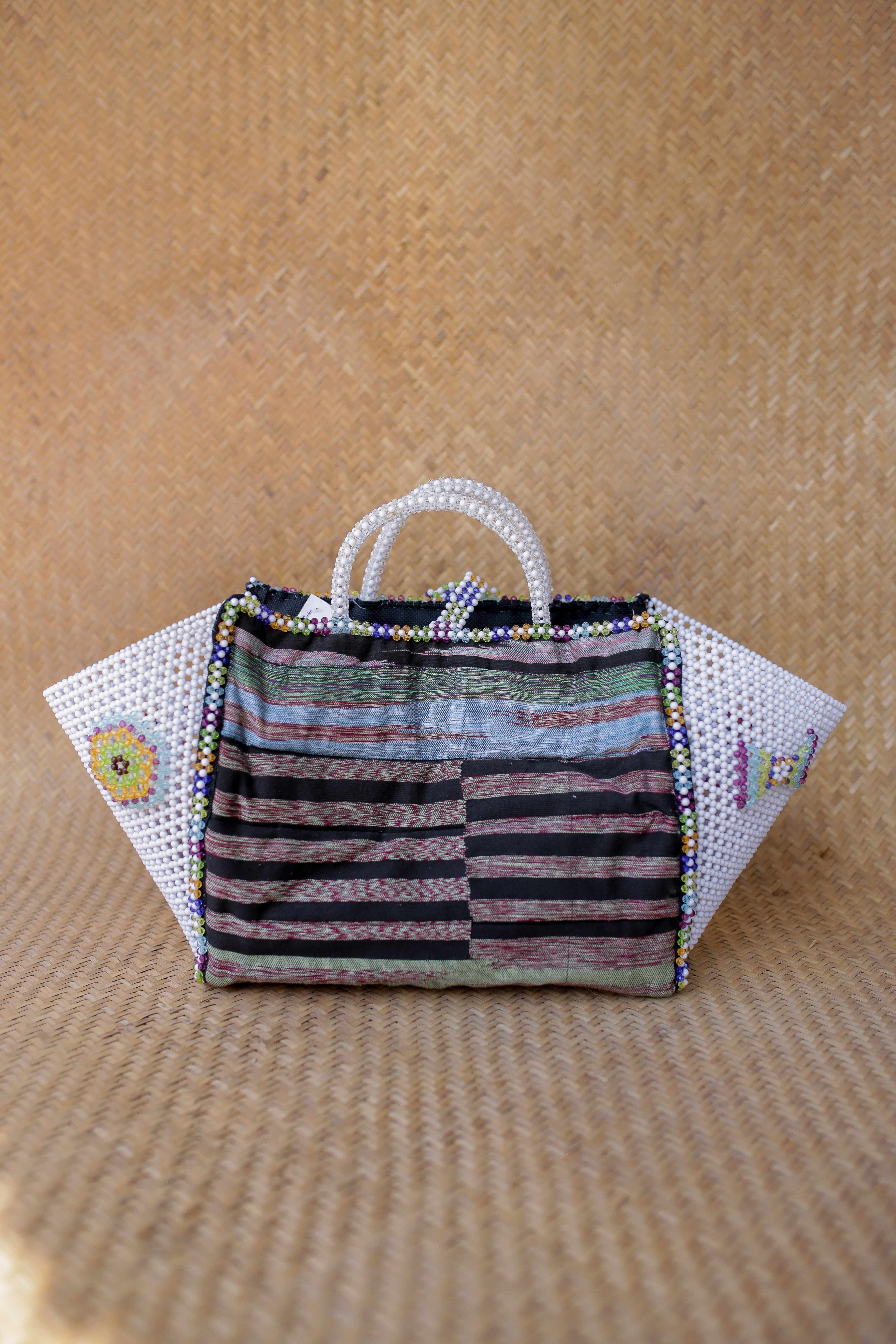 Ivory white- Length 21" width 9" height 12" strap- 5"