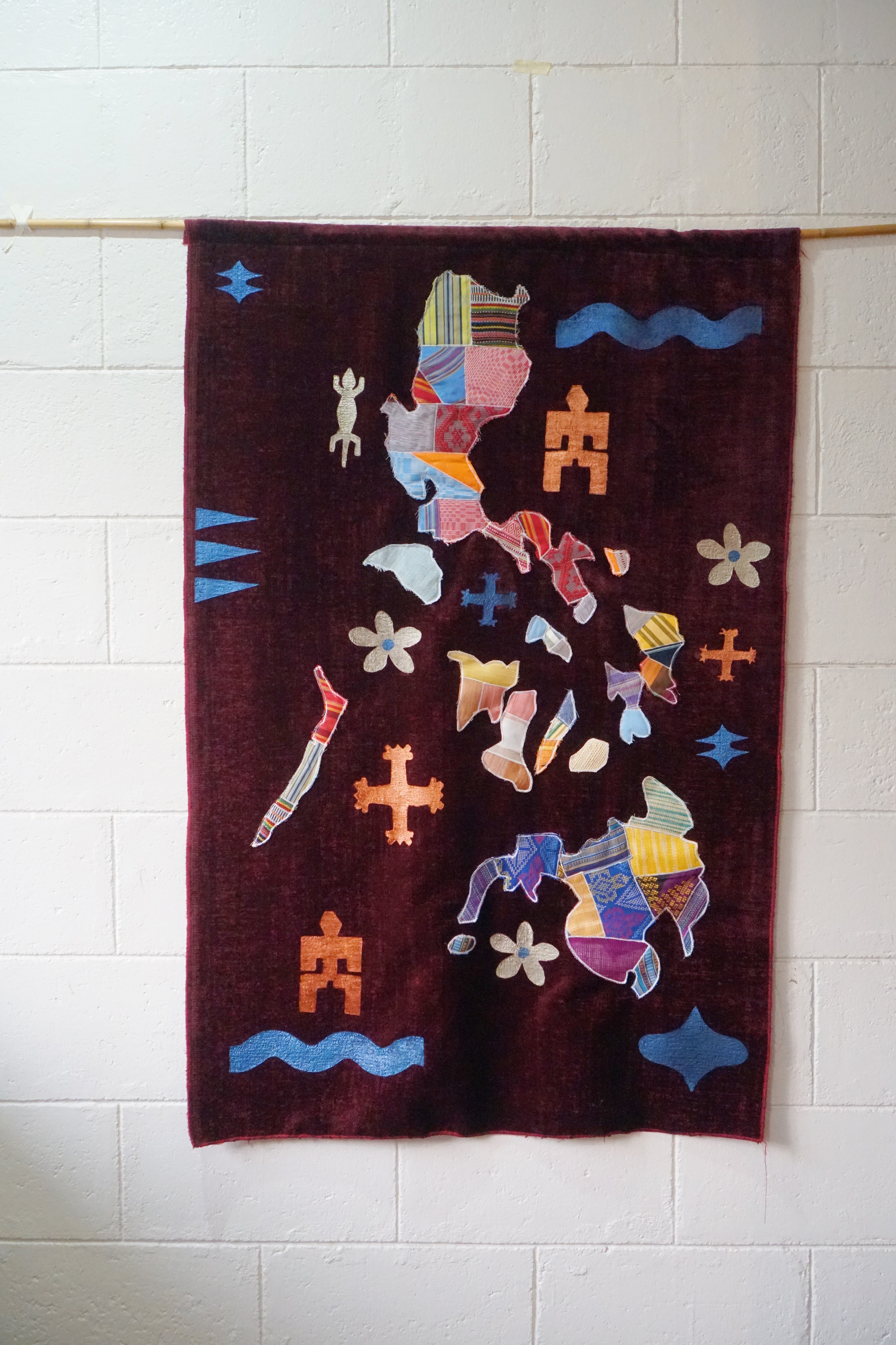 The Nayon Natin Tapestry Map is a meaningful collaboration with Studio Siriusdan, showcasing the beauty of our islands through a patchwork of handwoven fabrics from Luzon, Visayas, and Mindanao. Each map is handpainted with charming iconographies that bring our culture to life — a vibrant reminder that every weave, brushstroke, and island is part of one beautifully connected home.