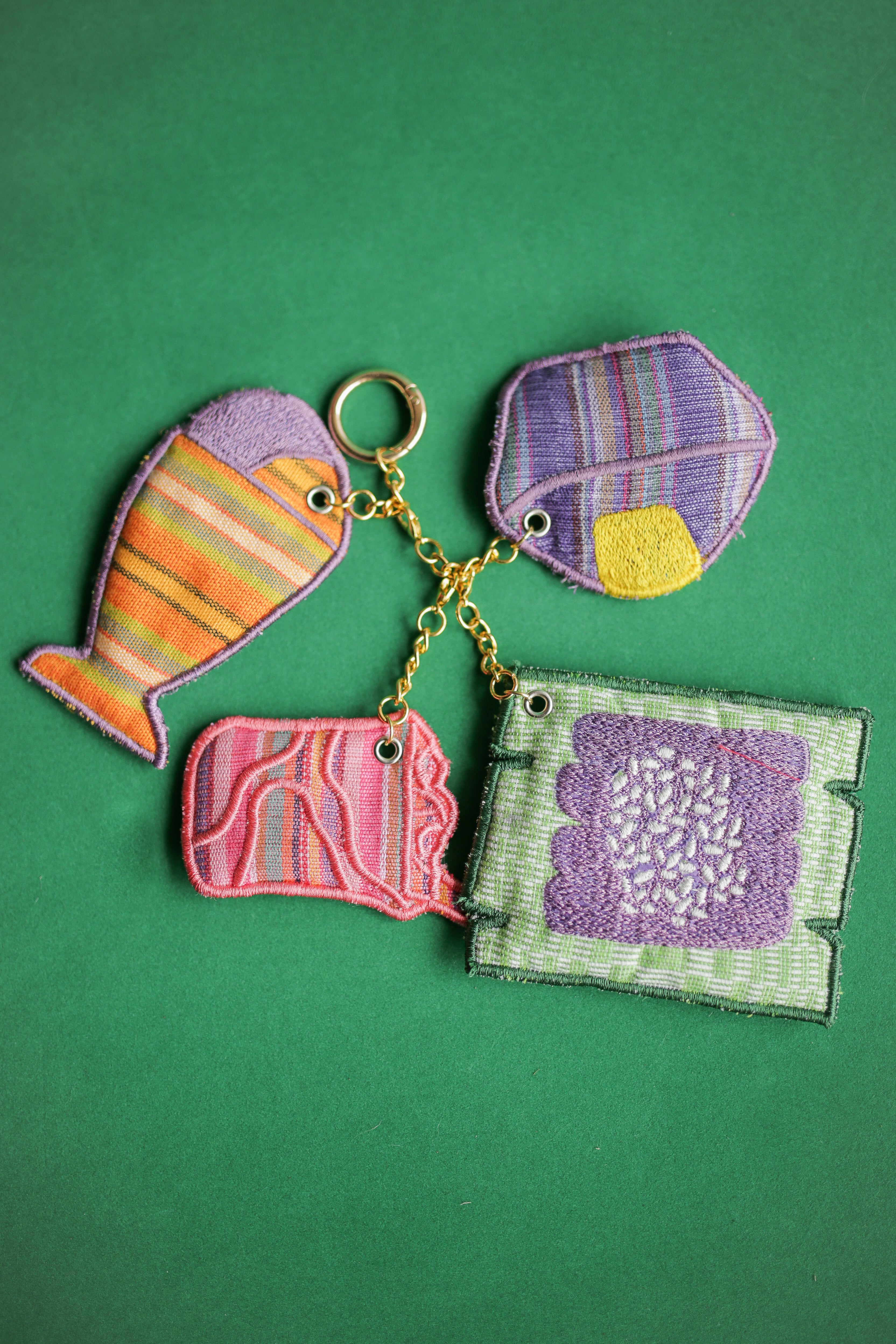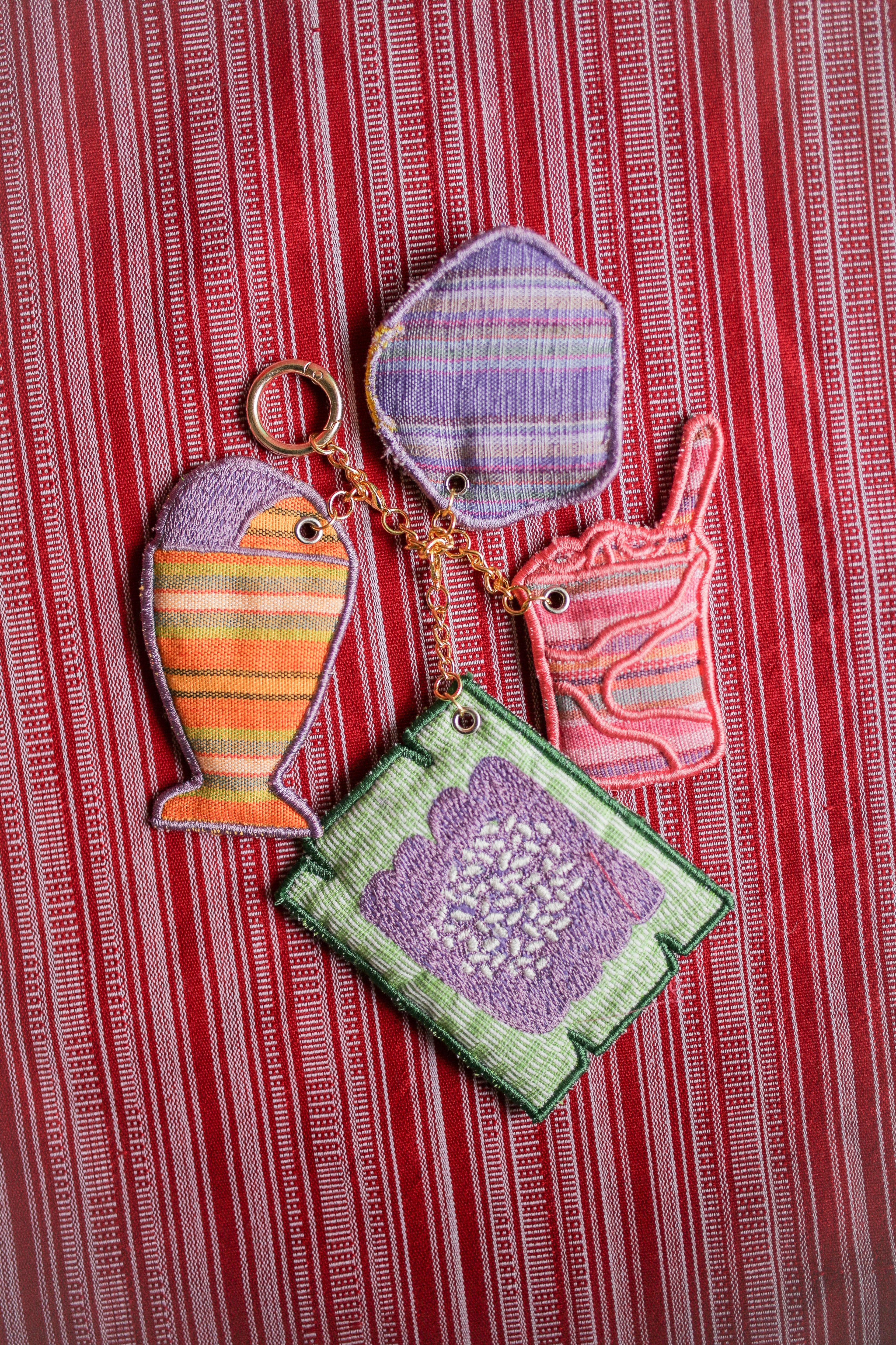 From puto bumbong freshly steamed in the streets to a cold glass of halo-halo on a hot afternoon, these Panghimagas Bag Charms bring back the sweetness of Filipino merienda memories. Each charm—featuring our classic desserts like puto, ice scramble, halo-halo, and puto bumbong—is lovingly embroidered using handwoven fabric scraps. A charming reminder of our shared love for kakanin and colorful childhood treats, these little delights let you carry a taste of home wherever you go.