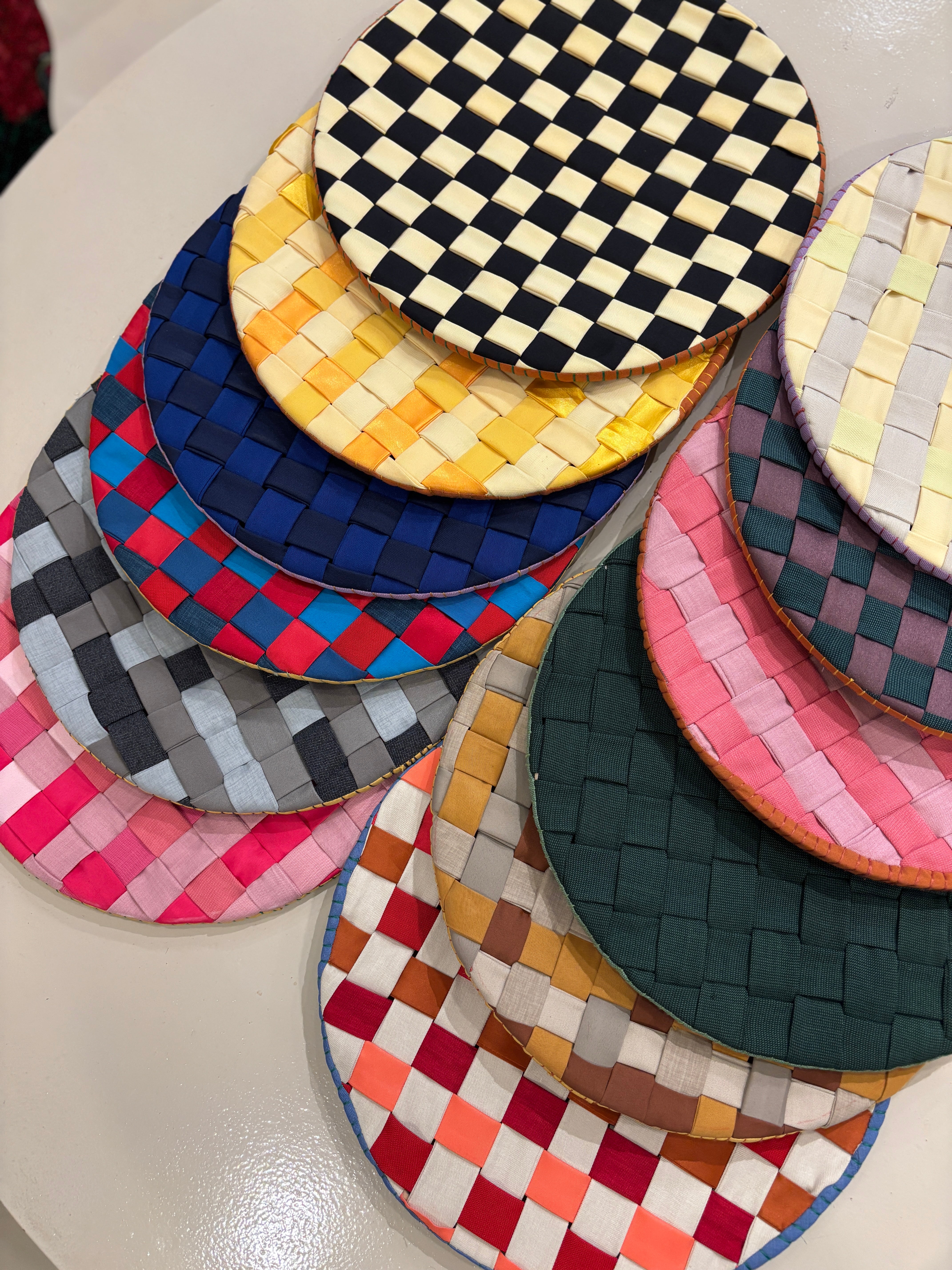 Inspired by the iconic bilao—a traditional round woven tray often used for winnowing rice or serving Filipino delicacies—these Woven Bilao Placemats are beautifully crafted from reclaimed and deadstock fabrics, turning textile waste into something purposeful and artful. Each piece adds a pop of color and texture to your table, perfect for everyday dining, creative tablescapes, or as a charming wall accent. Every placemat is one-of-a-kind—colors and patterns vary depending on the fabrics available, so what you’ll get is always a lovely surprise!