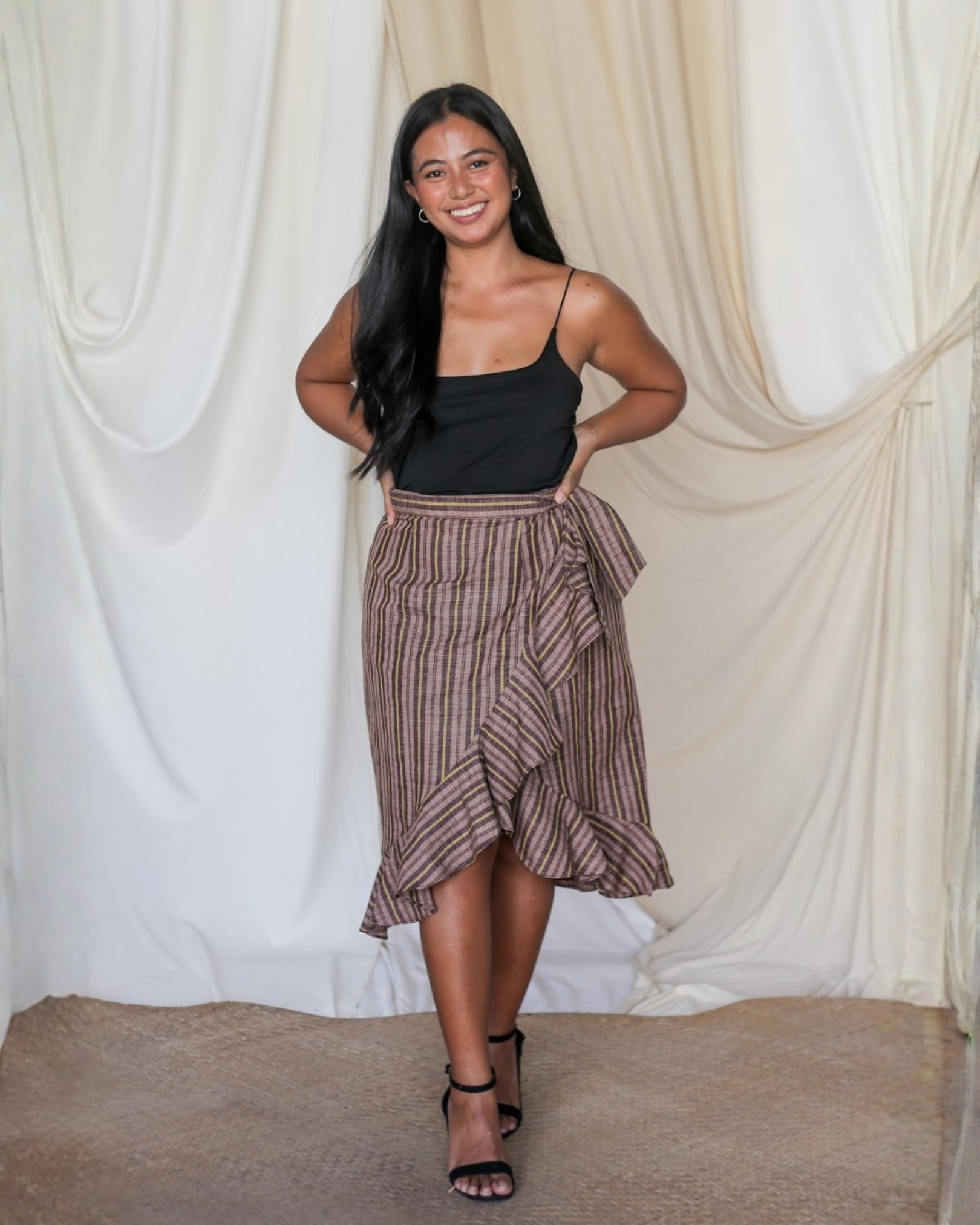 The Esmeralda Midi is a breezy wrap skirt that moves as effortlessly as you do. With playful ruffle details and a flattering silhouette, it’s a go-to for carefree days and endless summer memories. Made with handwoven stripes from our community partners, this midi-length beauty is perfect for both casual strolls and dressed-up moments.