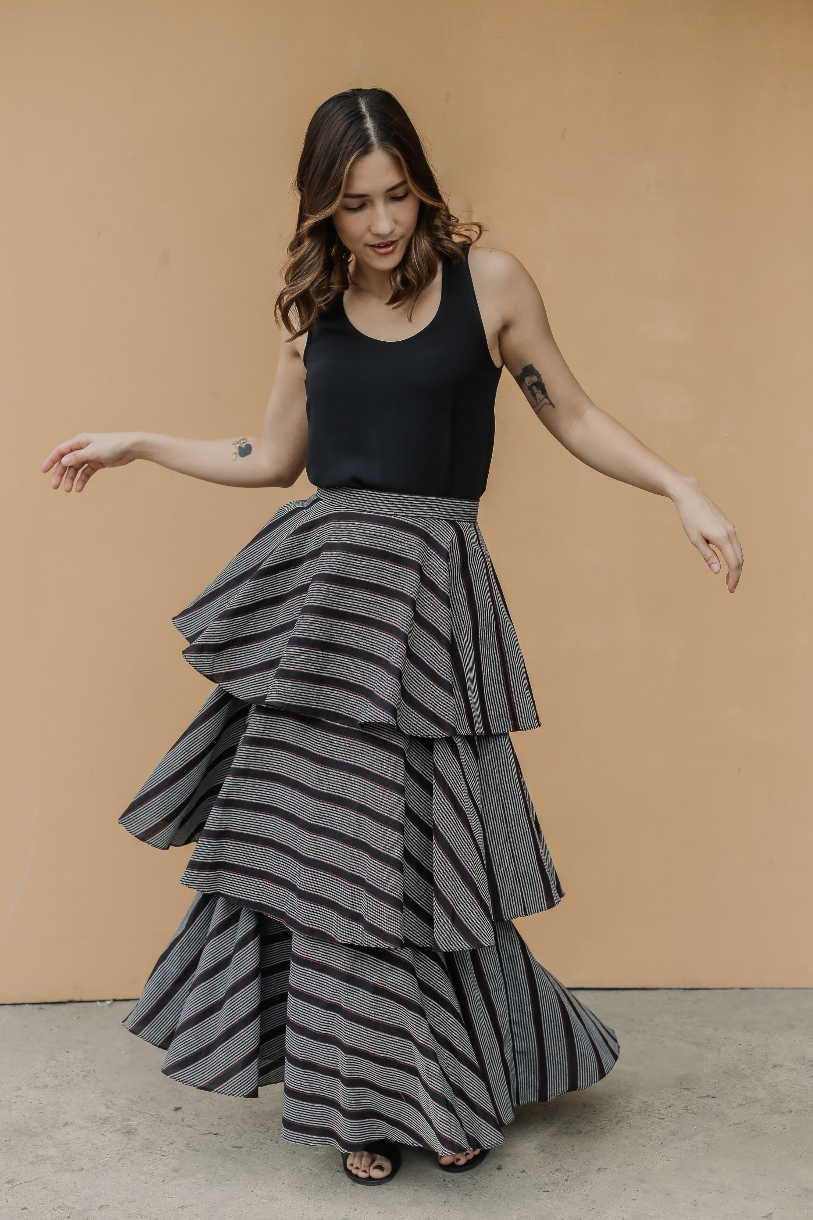 It’s the skirt of our countryside dreams. Our Loro Maxi is three layers of Kantarines heartwoven by our mother artisans in Bangued, Abra. Available in stripes, plaid, and checkered, the Loro is the skirt to wear when you want an easy and versatile piece to twirl around the city in.